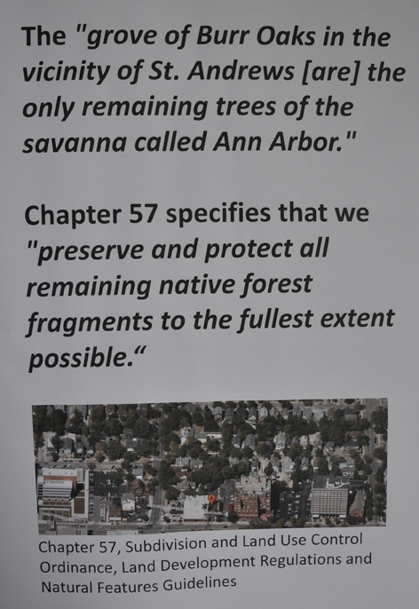 Ilene has created and mounted a series of boards with statements from various documents that can be used at for speaking at Monday evening’s Council Meeting. The first board shows the great variety of topics to be addressed.