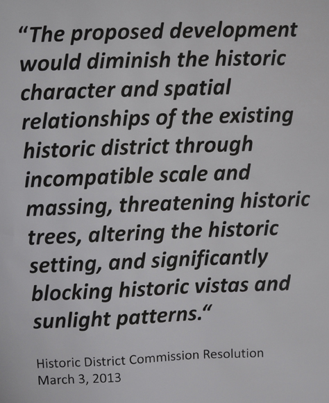8. “There cannot be any dispute that the development as presently proposed in its massing and out-of-scale size is incompatible with adjoining historic districts and would be detrimental to the public welfare as declared by this City’s prior findings and statements.”